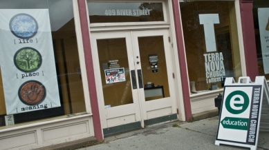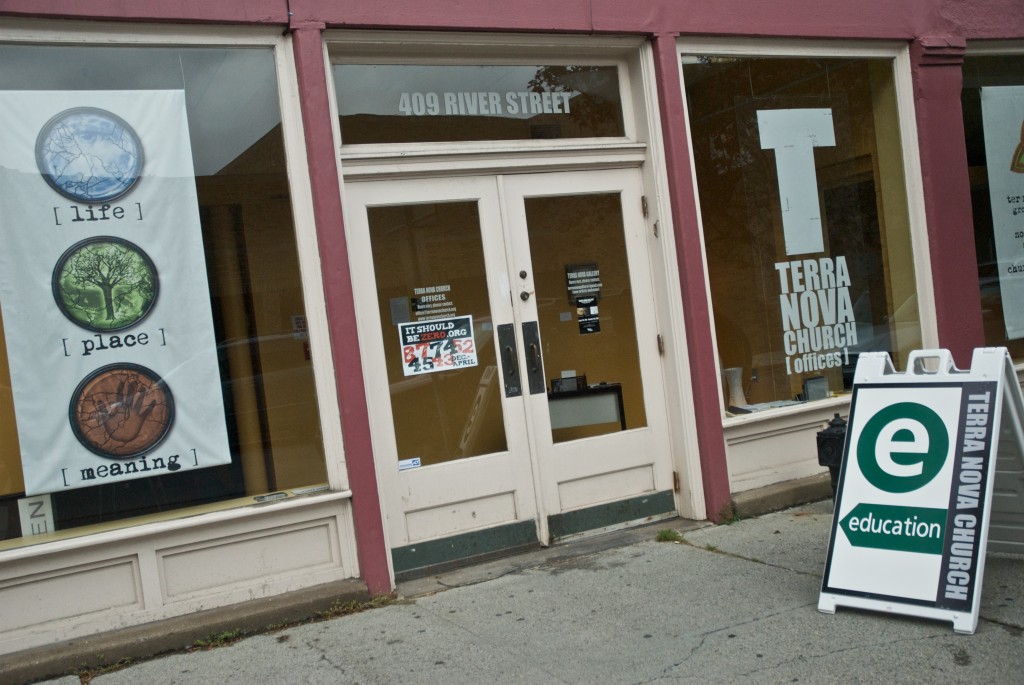As you head up to River Street from your car, you’ll see a Terra Nova sign pointing you into Revolution Hall for worship. Go on in and find a seat. While you may notice the taps on the wall, the bar is unfortunately closed during the service. If you have kids, and you’d like to put them in Kids Church, you can just keep walking down River Street. Three doors down from Rev. Hall you’ll see another Terra Nova sign pointing you into our Education building. Our kids classes, offices and gallery space can be found in there. A security assistant will check you and your children in at the front door and you’ll be shown to the appropriate classroom. If there are any issues during the service, your cell phone will be buzzed by your child’s teacher. Full information about Terra Nova Kids can be found on the Terra Kids page of this site.